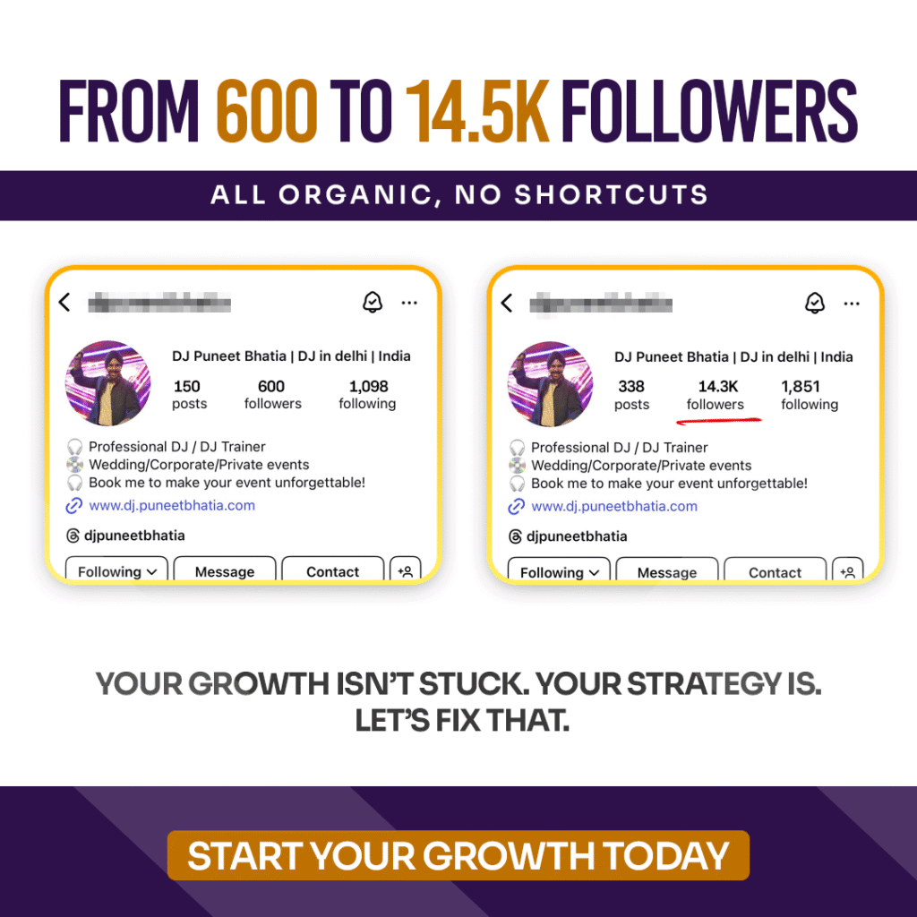 In 2022, I left my corporate job to raise my child — and ended up building a thriving personal brand from scratch. Today, I’ve helped 5,000+ creators, coaches, and founders grow on Instagram, boost engagement, and turn followers into paying clients — with real, repeatable strategies that work.